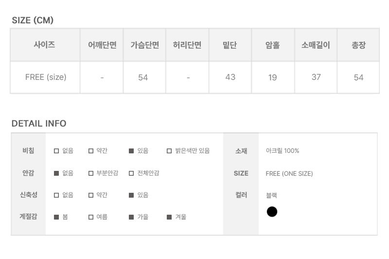 | Measurements are made with the garment laid flat. (The size may differ by 1~3cm) | ||||