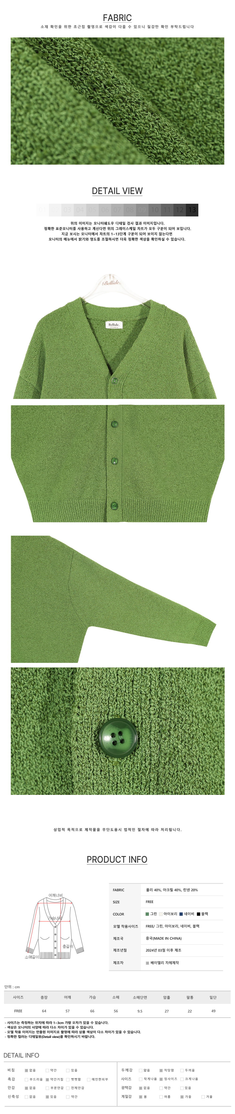 Material : POLYESTER 40%, ACRYLIC 40%, LINEN 20%