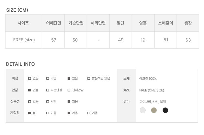 | Measurements are made with the garment laid flat. (The size may differ by 1~3cm) | |||||