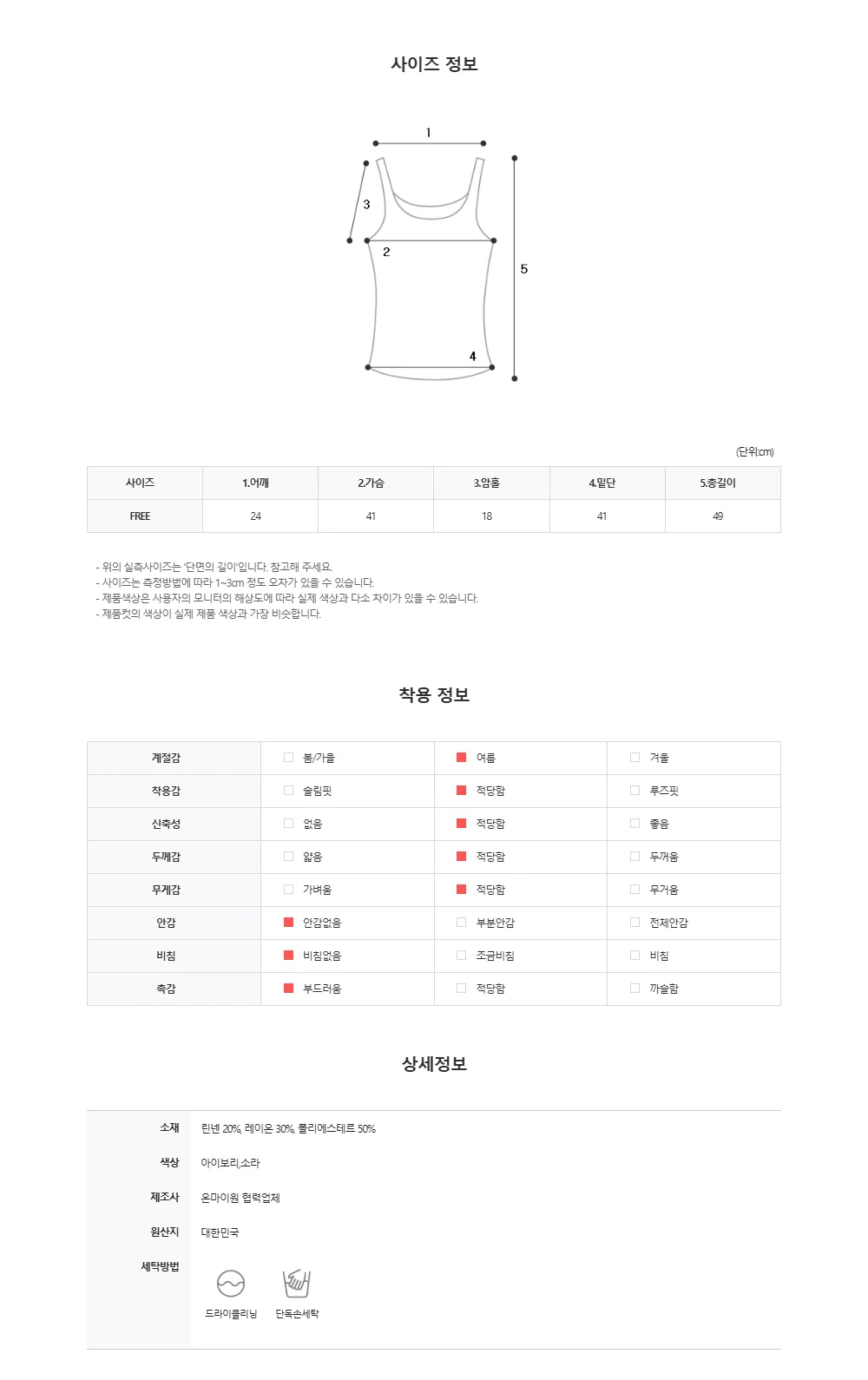 Material : Linen 20%, Rayon 30%, Polyester 50%