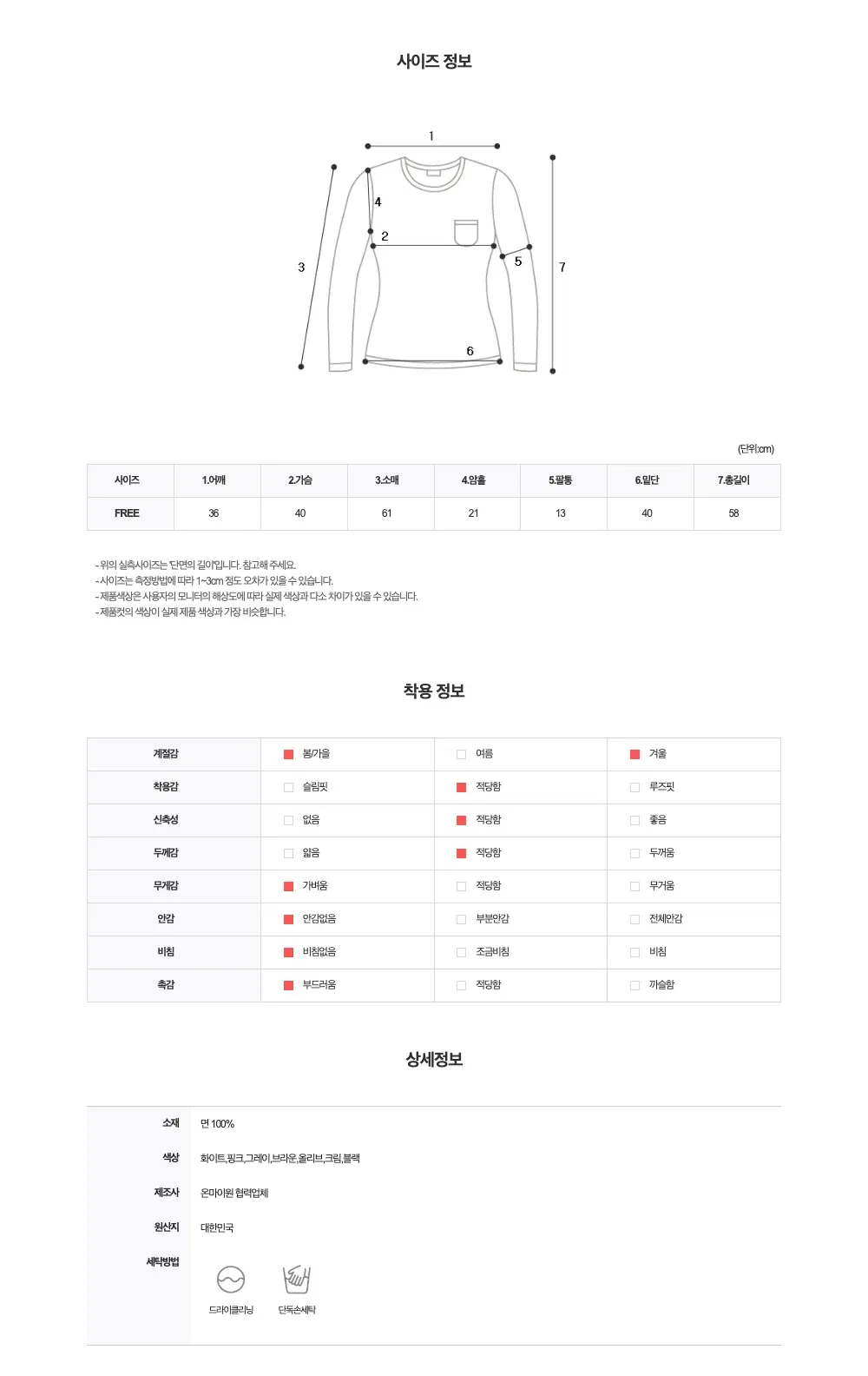 | Measurements are made with the garment laid flat. (The size may differ by 1~3cm) | |||||||
