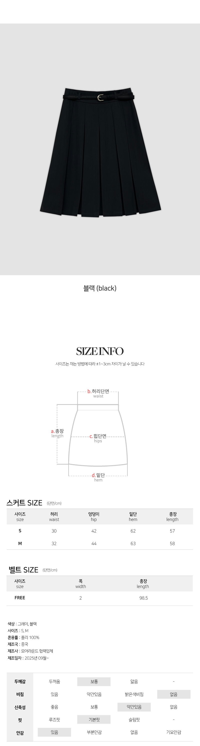 | Size | Waist | Hip | Hem | Length |