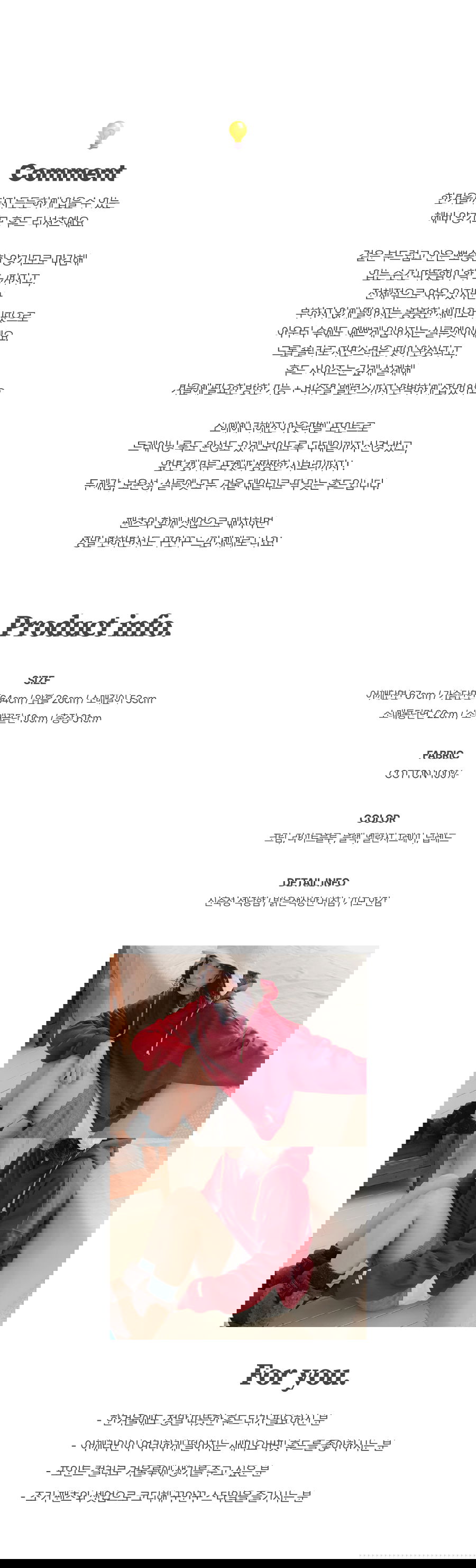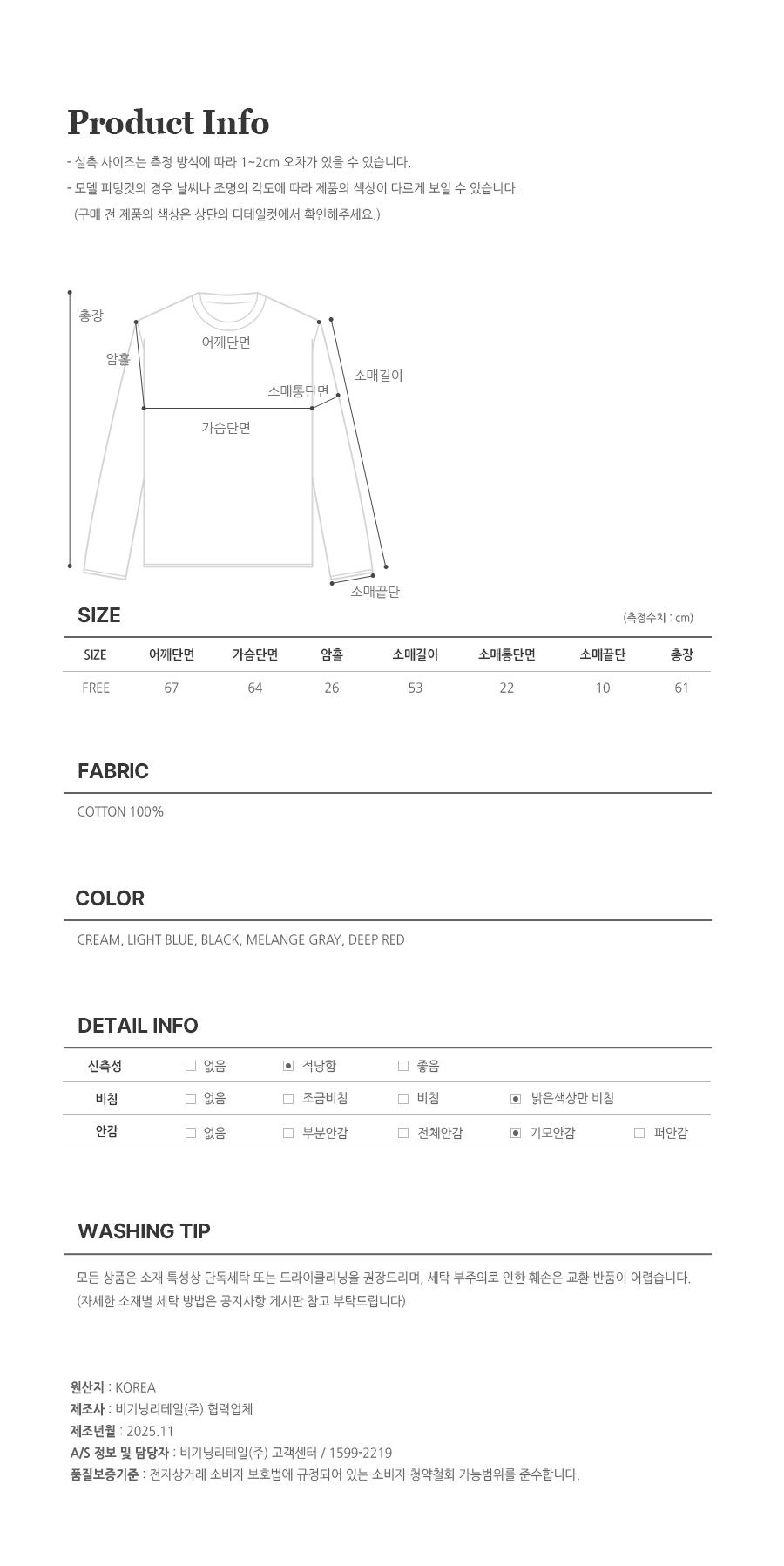 · Dry cleaning is recommended for the first wash of all clothes, please start wearing after washing.