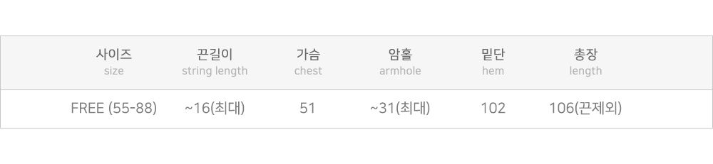| Measurements are made with the garment laid flat. (The size may differ by 1~3cm) | |||