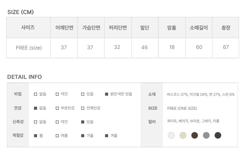 Material : Viscose 37%, Acrylic 28%, Cotton 27%, Span 8%